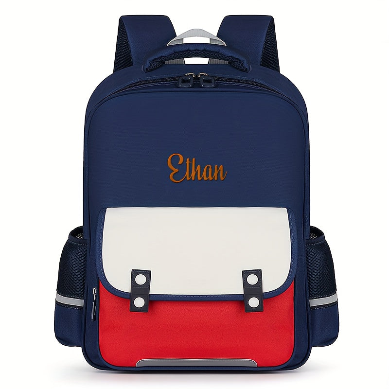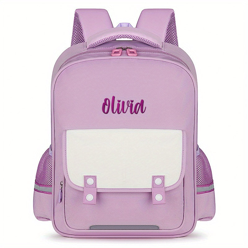 حقيبة ظهر مدرسية خفيفة الوزن بتطريز مخصص للأسماء للبنين والبنات - أحزمة قابلة للتعديل، بوليستر متين، عدة أقسام، تصميم سهل التنظيف للمدرسة الابتدائية والإعدادية والرحلات اليومية والسفر