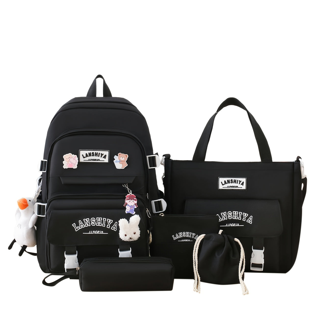 5 قطع حقيبة ظهر، حقيبة كتف كبيرة السعة، حقيبة يد بسيطة مع محفظة نقود، حقيبة كروس بودي كاجوال، مجموعة حقائب مدرسية خفيفة الوزن للطلاب، مع هدية مجانية (سحر بطة و3 سحر أرنب)
