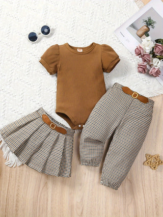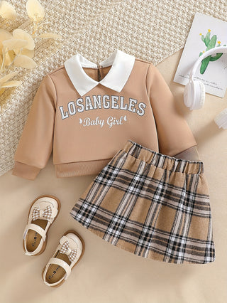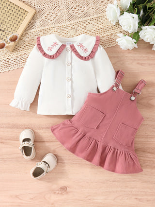 PatPat 2PCS طفلة حلوة بلون سترة مجموعة الوقوف الياقة البلوز وتنورة مطوية مطابقة الزي