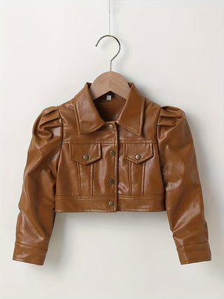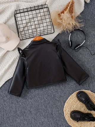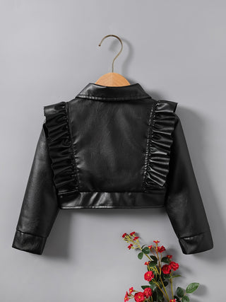 جاكيت جلد بولي يوريثان أنيق بأكمام طويلة مع كشكشة لطفل رضيع، ملابس للبنات الصغيرات والرضع للربيع والخريف خارج المنزل