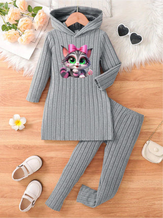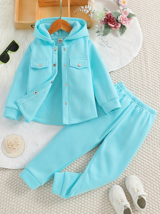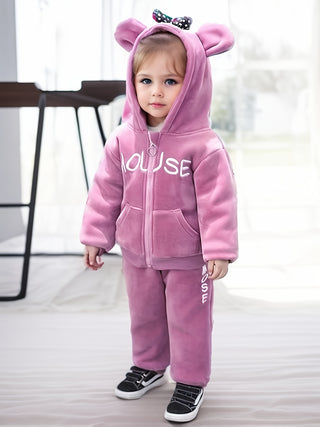 طقم هودي وبنطلون جوجرز مبطن بالفليس للفتيات - زي شتوي دافئ مع جيوب، قابل للغسل في الغسالة، مثالي للخارج