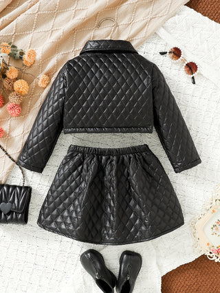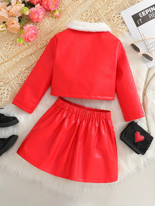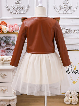 سترة وتنورة جلدية أنيقة للأطفال الصغار، بأكمام طويلة، بسحاب أمامي، جيوب، ملابس عصرية للفتيات في الخريف/الشتاء
