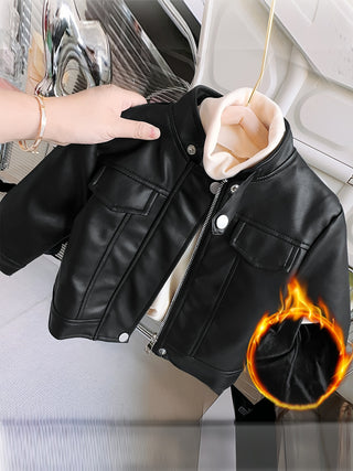 جاكيت أطفال مريح ببطانة فليس من الجلد الصناعي - مقاوم للماء، بأسلوب الدراجين بسحاب للأولاد والبنات، مثالي للخروجات الشتوية