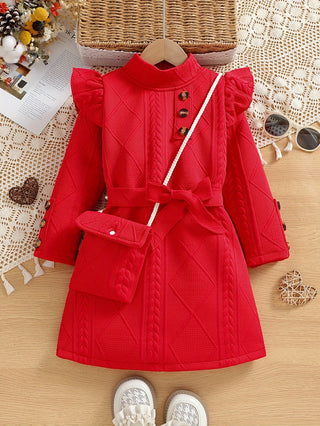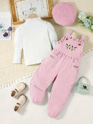 1 طقم فتاة لطيفة القطيفة حمالة صدر بجامبسوت + قميص طويل الأكمام مكشكش + حقيبة ، نمط غير رسمي ملابس بنات ربيع / خريف ، هدية
