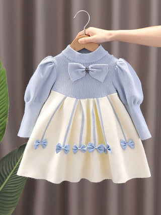فستان جينز بطية للفتيات العصريات مع حزام القوس وأكمام طويلة للحفلات الخريفية لملابس الأطفال