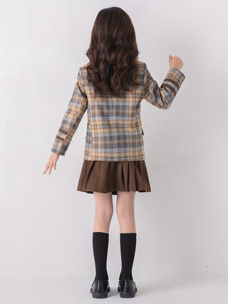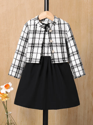 طقم أنيق للفتيات من 3 قطع: سترة مربعات، تنورة مطوية وربطة عنق - مثالي لحفلات أعياد الميلاد، الخطب، الأعراس والمناسبات الرسمية