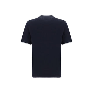 Brunello Cucinelli Blue Cotton Long Sleeve T-Shirt