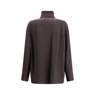 Brunello Cucinelli Brown Calf Leather Bos Taurus Turtleneck