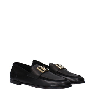 Dolce & Gabbana Black Leather Slipper Loafers Stitched Shoes