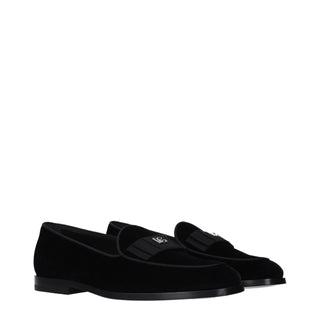 Dolce & Gabbana Black Velvet Slip On Men Loafers Formal Shoes