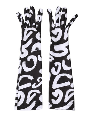 Dolce & Gabbana Black White DG Logo Elbow Length Mitten Gloves