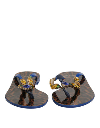Dolce & Gabbana Blue Crystals Flats Sandals Beachwear Shoes