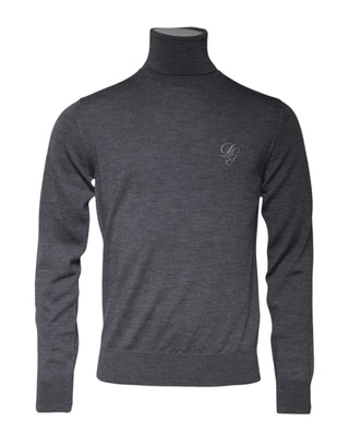 Dolce & Gabbana Gray Wool Logo Turtleneck Pullover Sweater