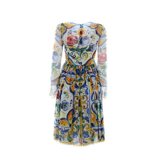 Dolce & Gabbana White Silk Floral Print A-line Midi Dress