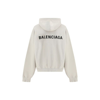 Balenciaga White Cotton Logo Hooded Pullover Sweatshirt Sweater