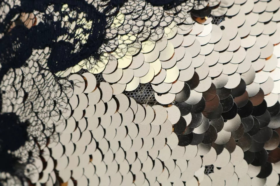 Material: 60% polyester, 26% cotton, 5% crystal, 5% silk, 4% lamb leather