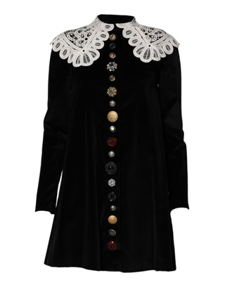 Dolce & Gabbana Black Velvet Lace Collared Embellished Dress