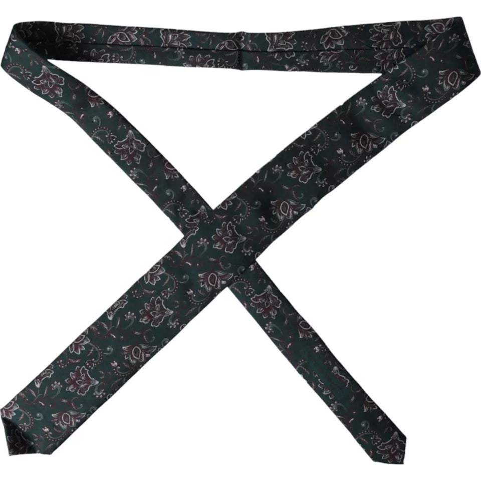 Dolce & Gabbana Green Floral Print Silk Adjustable Men Tie
