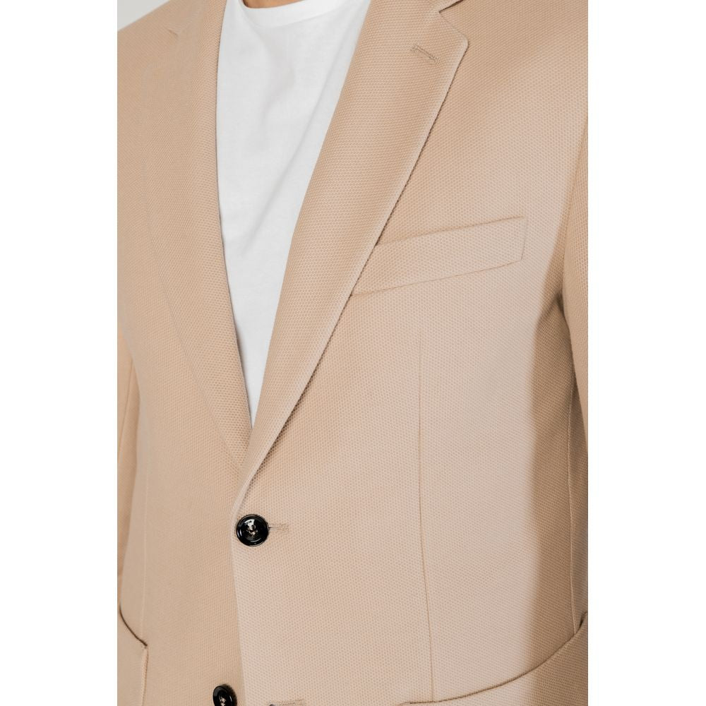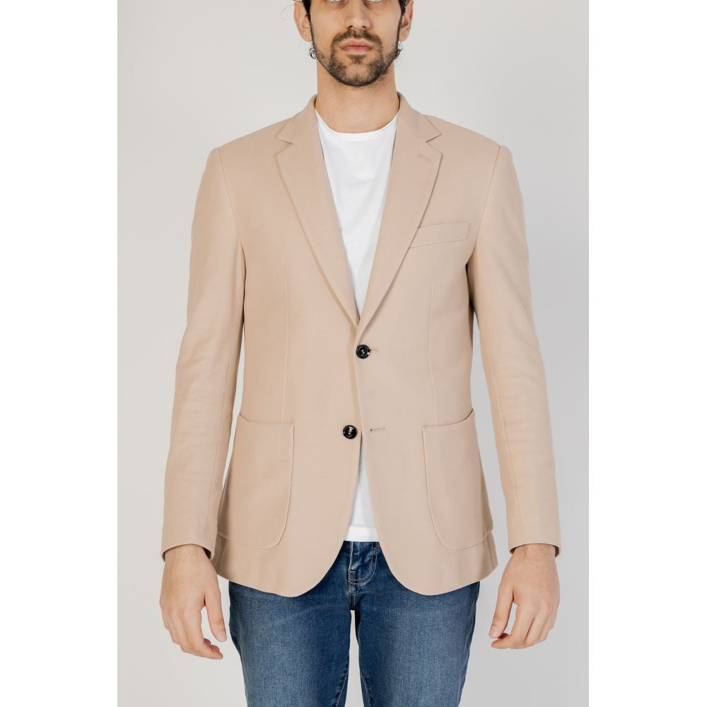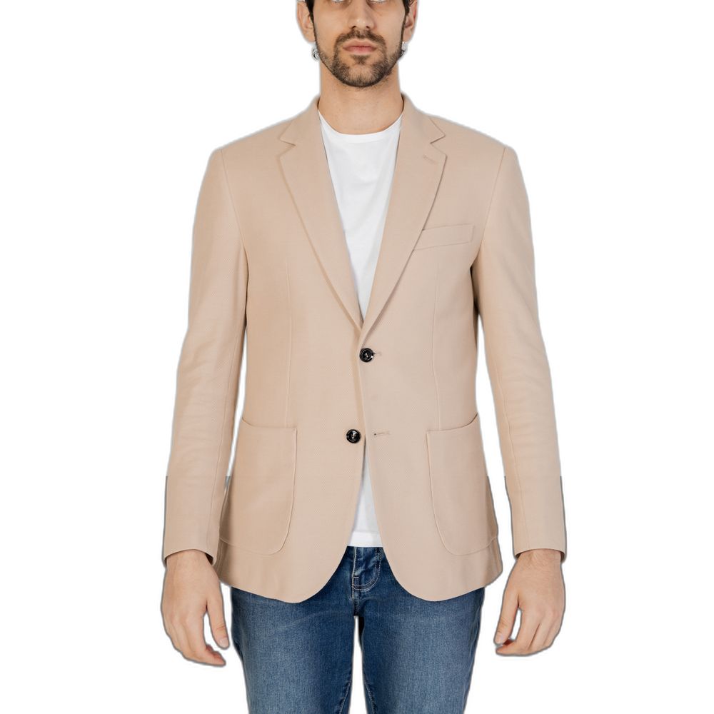The Liu Jo men’s single-breasted blazer, model M124P102NIDOBLAZER, is an essential piece for the modern man’s wardrobe. Crafted from 100% high-quality cotton, it ensures comfort and breathability, making it suitable for year-round wear. The elegant design features a two-button closure, classic lapels, and front patch pockets, adding a modern and refined touch. A chest pocket and meticulous stitching enhance its sophisticated look, making it perfect for both formal occasions and smart-casual outfits. The tailored fit flatters the male silhouette, making this blazer versatile and easy to pair with dress pants or jeans.