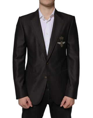 Dolce & Gabbana Black Crown Bee Single Breasted Coat Blazer