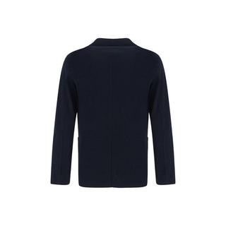 Dolce & Gabbana Blue Wool Logo Single Breasted Coat Blazer