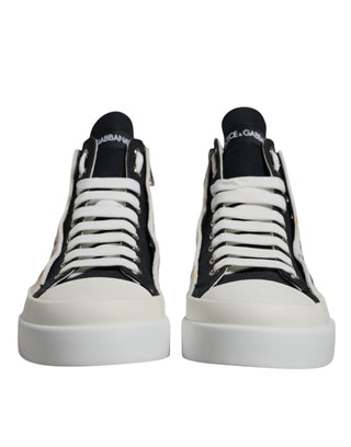 Dolce & Gabbana White Black Cotton High Top Sneakers Shoes