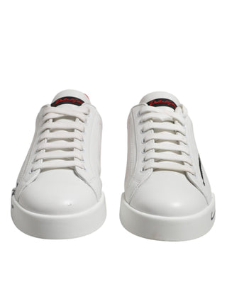 Dolce & Gabbana White Black Leather Portofino Sneaker Shoes