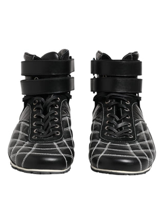 Dolce & Gabbana Black Quilted Leather Lace Up Sneakers Shoes