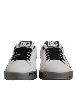 Dolce & Gabbana White Silver Crystal Logo Portofino Sneakers Shoes
