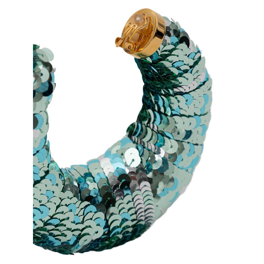 Tom Ford Croissant Hoop Earrings with Sequins. In turquoise green, light structure covered with sequins, clip closure in 18kt gold-plated brass, nickel-free.