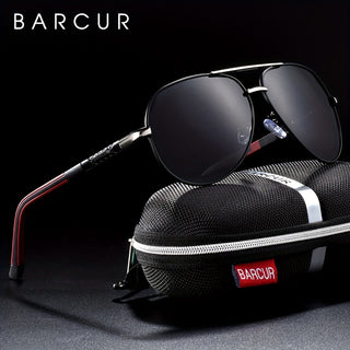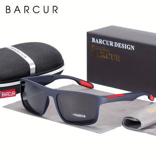 نظارة شمسية مربعة الشكل مستقطبة من BARCUR للرجال ، إطار معدني كلاسيكي مع نظارات معبد مطاطية ملونة عصرية