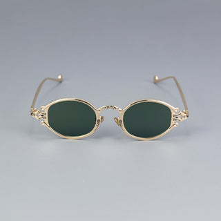 نظارات أنيقة بدون إطار دائرية للنساء والرجال - عدسات خضراء فاخرة مع أذرع الفهد العتيقة، مثالية للشاطئ والحفلات