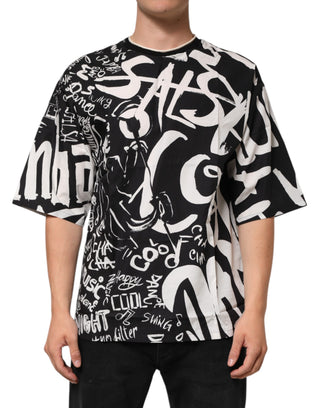Dolce & Gabbana Black White Cotton Oversized Graffiti T-shirt