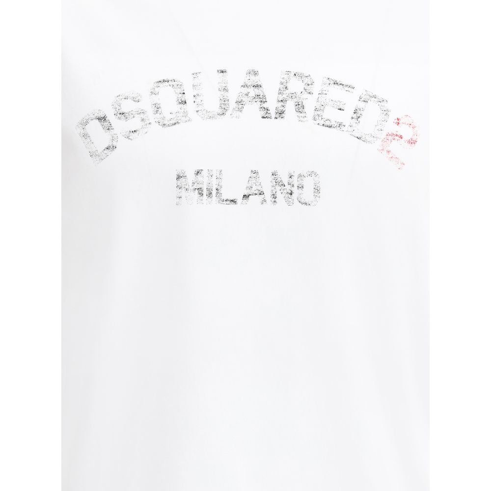 Cotton T-Shirt by Dsquared2, ribbed crew neck, iconic brand monogram printed on front, monochrome pattern, oversize fit.