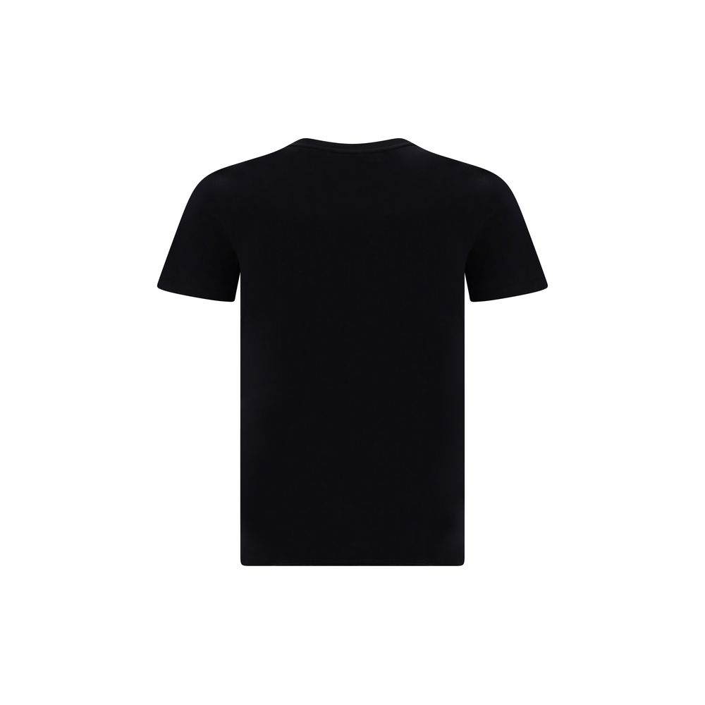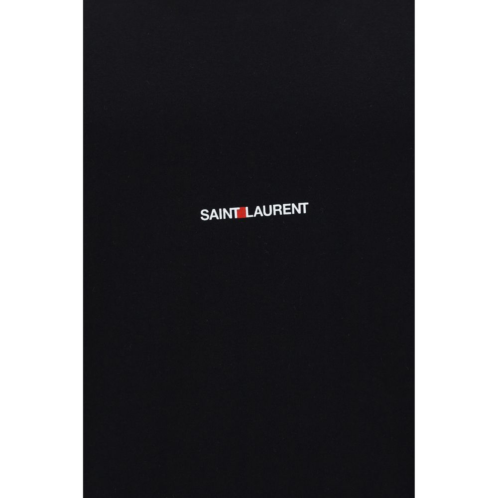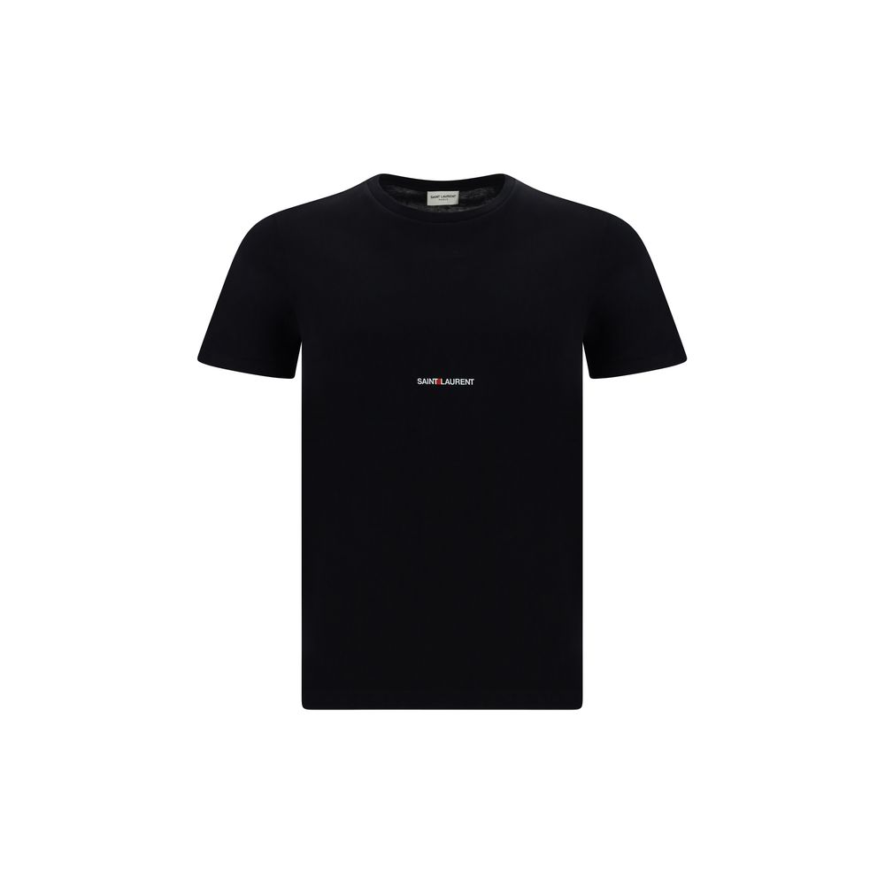 Cotton T-Shirt by Saint Laurent, ribbed crew neck, contrasting iconic brand monogram on front, monochrome pattern, regular fit.