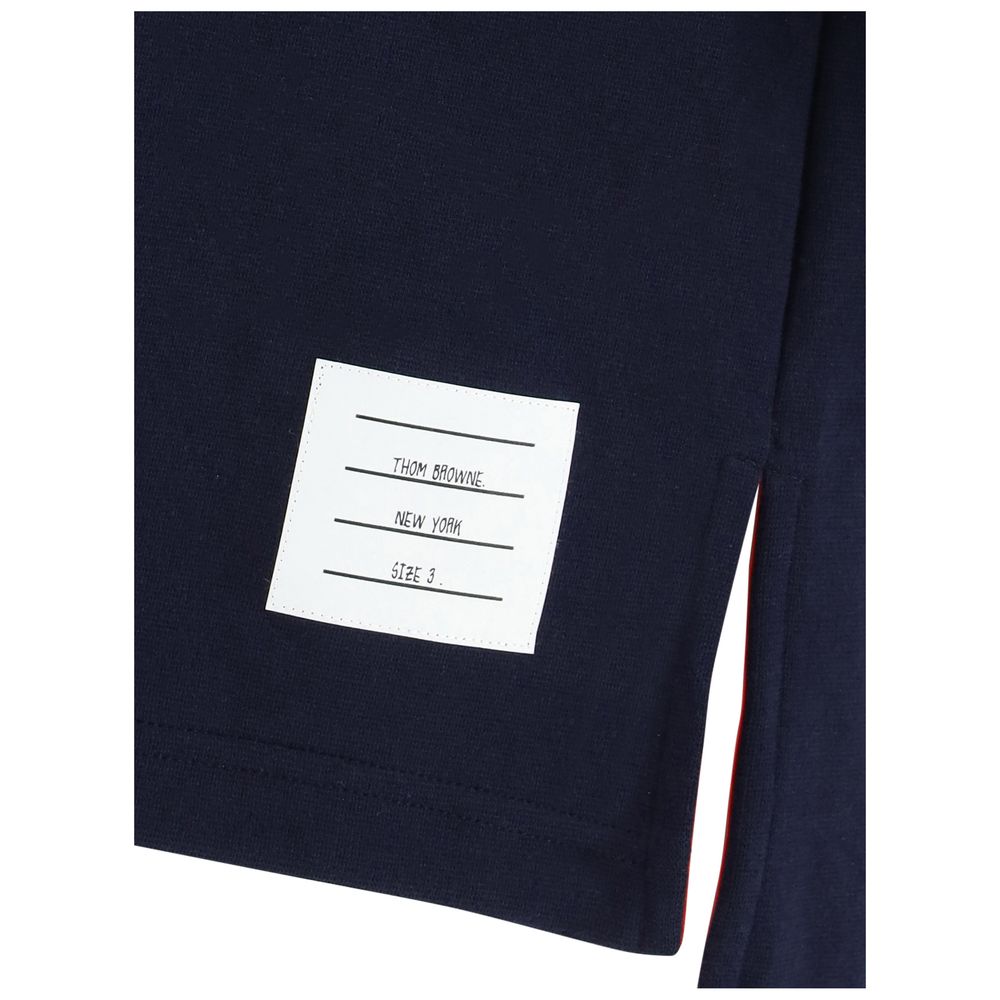 Thom Browne’s cotton T-Shirt features a ribbed collar and a distinctive design with the iconic colored bands on the sleeves, echoing the brand’s signature style. On the front, the iconic monogram patch adds an exclusive touch. The side slits, also decorated with the iconic bands, add versatility and a modern touch to the garment. The monochrome pattern makes this T-shirt easy to pair with different looks, offering the perfect balance between casual elegance and sophisticated details.