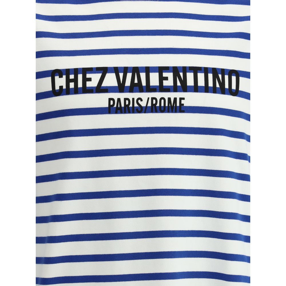 Valentino’s striped T-shirt is a fresh and stylish piece, perfect for those seeking a casual yet sophisticated look. The boat neck lends a touch of elegance and sophistication, while the all-over stripe pattern gives the design an attention-grabbing vibrancy. The brand’s iconic contrasting printed logo on the front adds a distinctive, easily recognizable detail