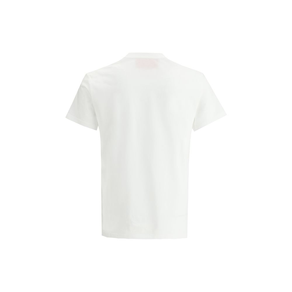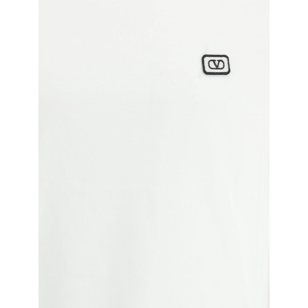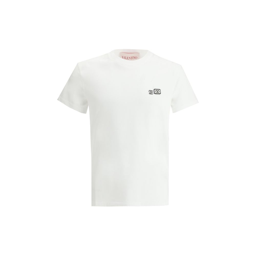 Cotton T-Shirt by Valentino, ribbed crew neck, contrasting applied iconic brand logo patch on front, monochrome pattern, regular fit.