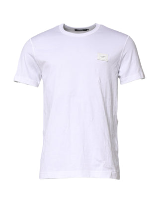 Dolce & Gabbana White Cotton Logo Plaque Round Neck T-shirt