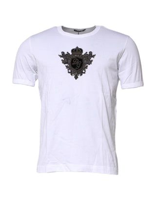 Dolce & Gabbana White Cotton Embroidered Round Neck T-shirt
