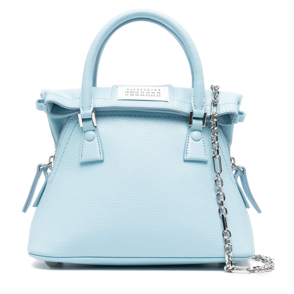 maison margiela, light blue calfskin tote bag, button and zipper closure. Depth 10 cm Handle 7 cm Height 15 cm Shoulder strap 55 cm Width 22 cm