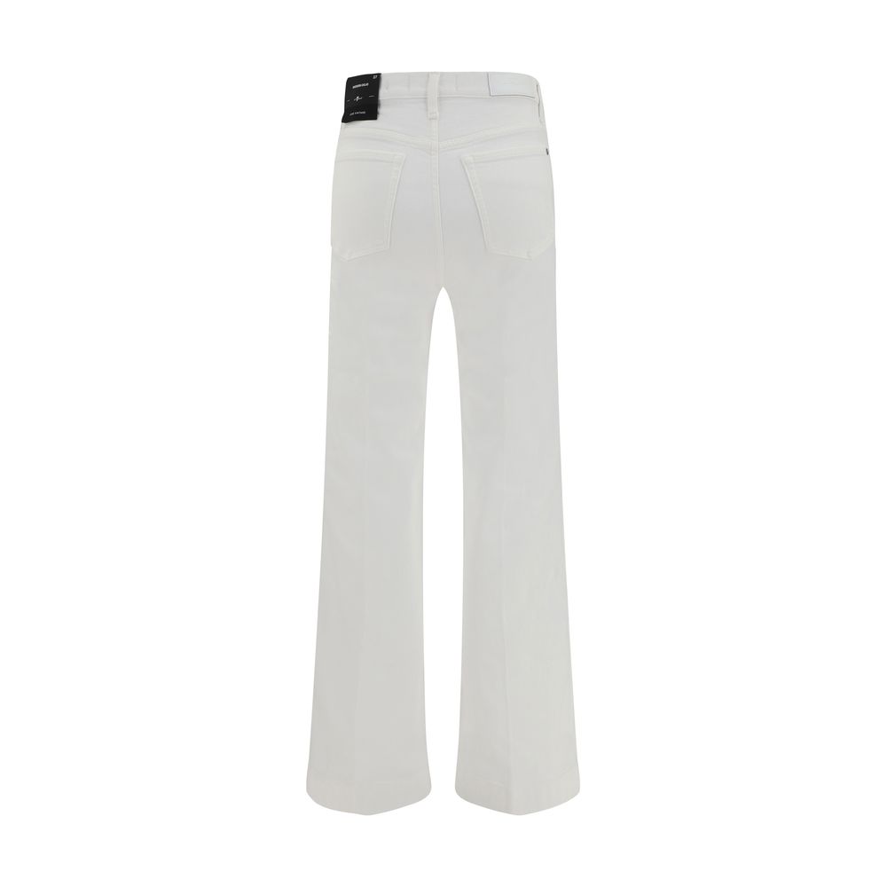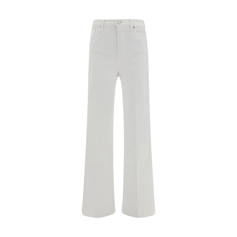 The Modern Dojo Jeans by 7For are a five-pocket flare style featuring a front zipper and button closure. Belt loops on the waistband offer the ability to customize the fit. This sleek, modern design is perfect for those looking for a pair of jeans that combine comfort and style with an elongated, slim silhouette.