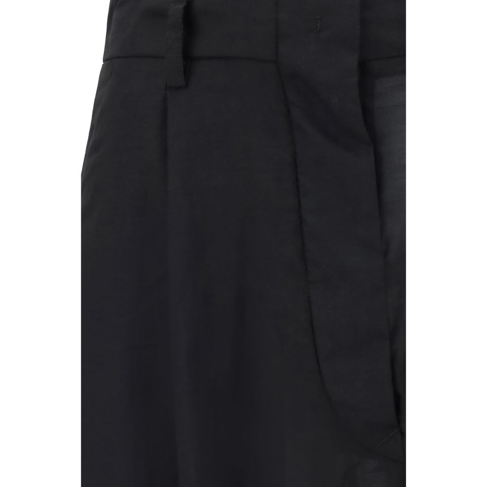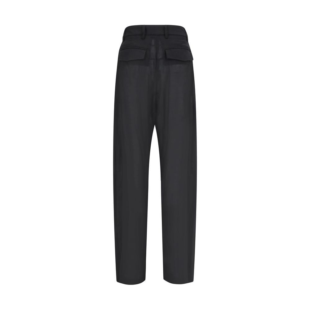 The Latest’s wide Pants combine elegance and originality with a see-through design that lends lightness and femininity. Complemented by a button-and-zip front closure, waist loops and welt pockets on both front and back, they offer a modern and sophisticated fit.