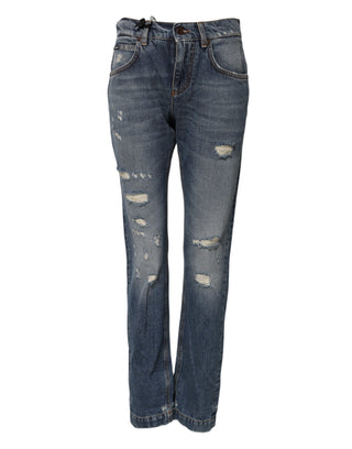 Dolce & Gabbana Blue Cotton Tattered Mid Waist Denim Jeans