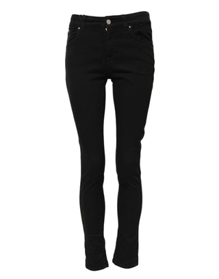 Dolce & Gabbana Black Cotton Logo Skinny Mid Waist Denim Jeans