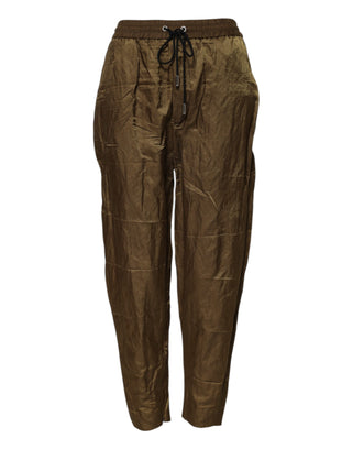 Dolce & Gabbana Black Polyester Logo Print Mid Waisted Pants