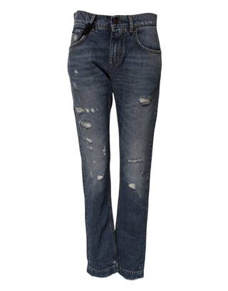 Dolce & Gabbana Blue Cotton Tattered Boyfriend Denim Jeans