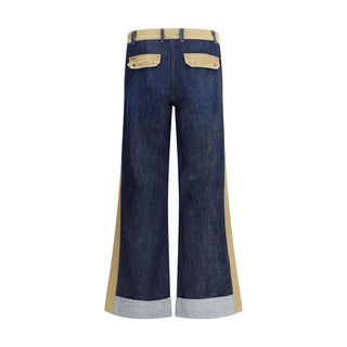 Dolce & Gabbana Light Blue Drawing Mid Waist Wide Leg Pants