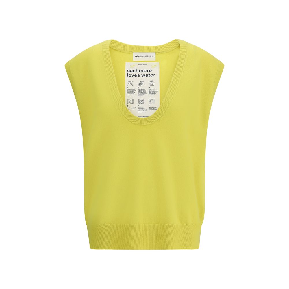 The Lord Vest by Extreme Cashmere is an essential garment with a clean, contemporary design. Featuring a deep ribbed-finished neckline and an also ribbed hem, it offers versatility and sophistication, ideal for wearing alone or layered.