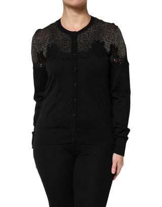 Dolce & Gabbana Black Viscose Lace Buttoned Cardigan Sweater
